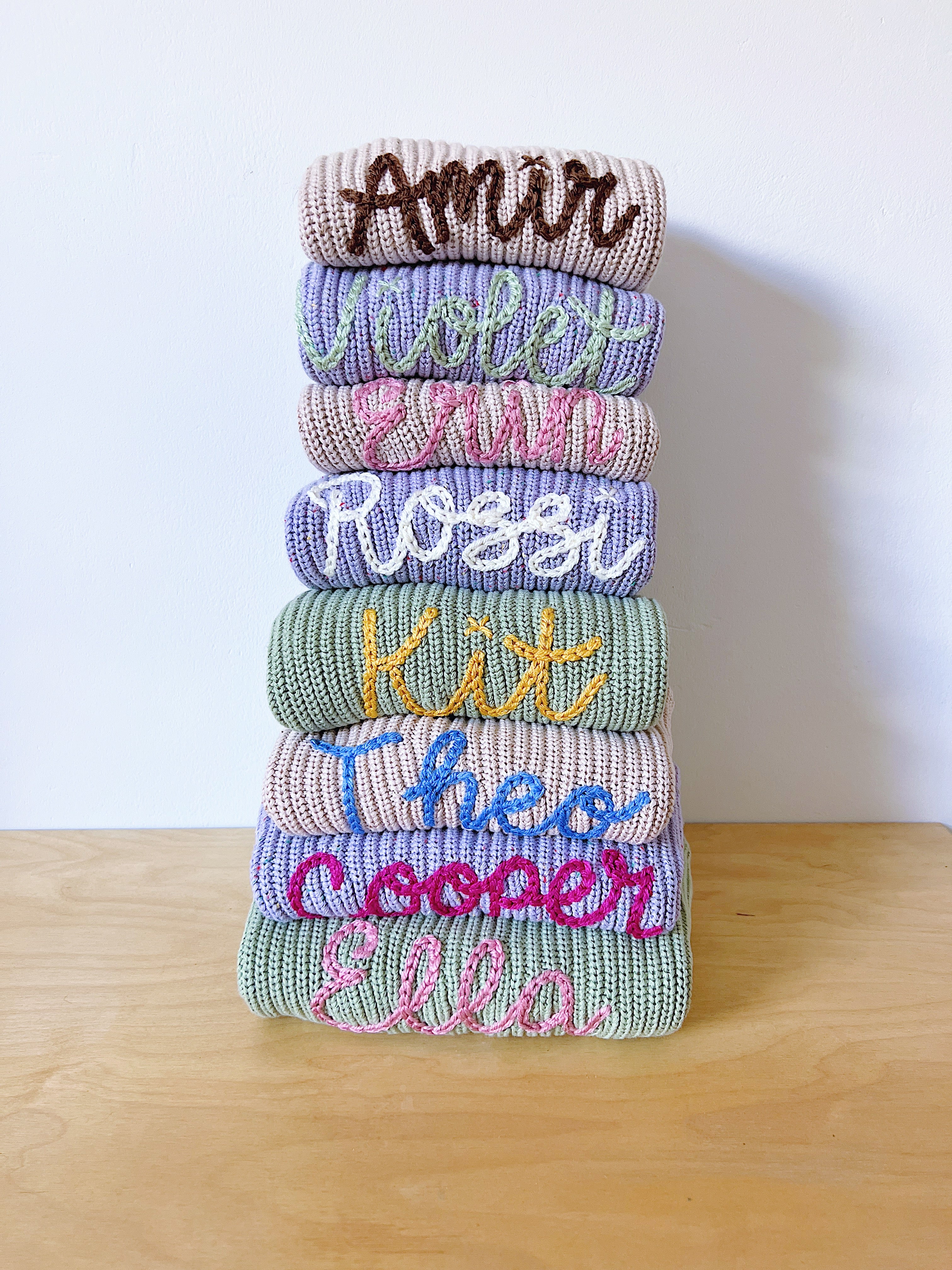 We are the original hand knitted name cardigan store dreamt up 2018 and established in 2020. TLWS gives new life to classic hand knits that are treasured forever, passed down and become true heirloom pieces to wear and display. We now have name embroidered blankets, cotton knits, stockings, send in service and cashmere now too! find out more here